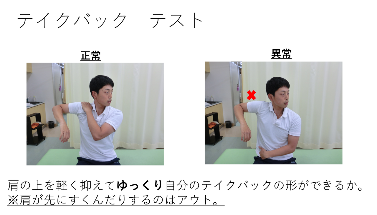 肩や肘の痛みが続く選手でこの動きが原因になっている選手も多いです。