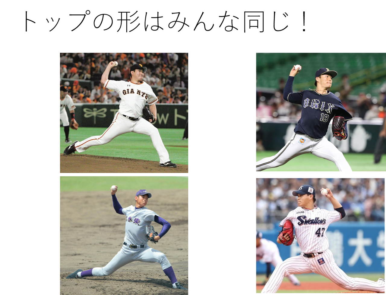 テイクバックの仕方は人それぞれですが、トップの形はみんな同じです。
