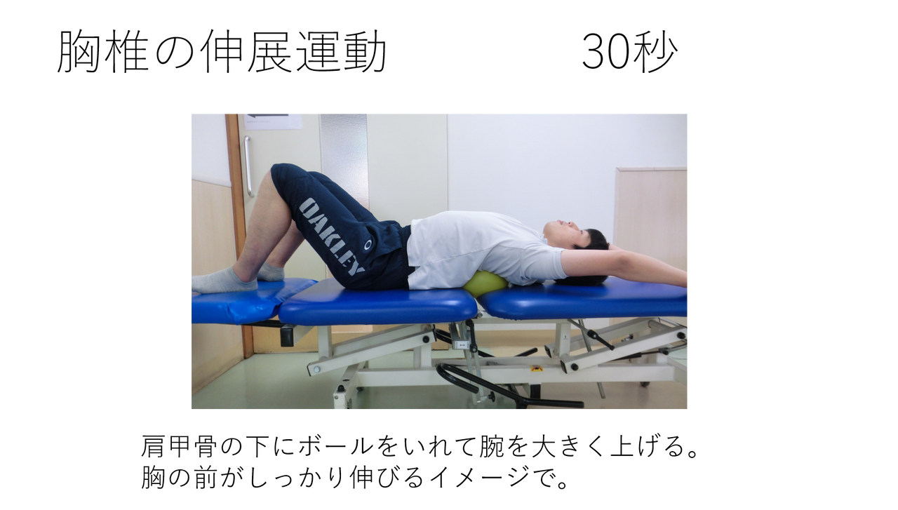 この3つの運動で胸椎、肩甲骨の可動域を広げることで投球中の捻転差がつくりやすくなります。