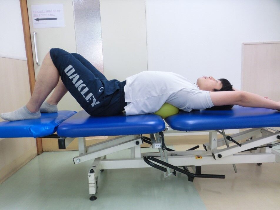 一番最初に紹介した背中にボールをいれた胸椎伸展のストレッチ。